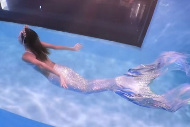 她的鱼尾和衣服很配,显得整个人更美了