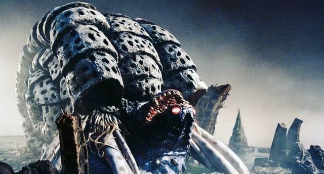 新城哲夫闻言将目光朝前方投去,视线越过防压玻璃落在前方那头巨大的怪兽上,那只体型庞然的怪兽忽然动了起来,它晃动的躯体搅动周遭海水,猩红的双目闪烁着危险的光芒,伴随着它的动作,平静的海面上陡然翻滚沸腾起来,蓝色的闪电从天空劈落,直直击中海面,雷光闪烁间,有着巨大黑色鹦鹉螺外壳似的怪兽陡然显现了出来,它外壳表面上带有密密麻麻的黑孔,壳口处带有大量的触手和巨大钳子,但最令人瞩目的,还是它那颗嘴在上眼在下几乎颠倒了一百八十度的脑袋