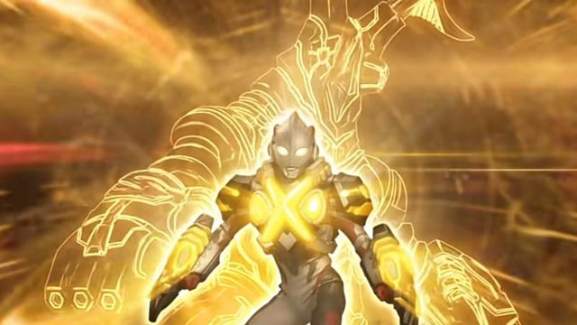 数据世界中,艾克斯张开双臂,身后立刻浮现出芝顿庞然的身影,随后身影破碎成一滩金色光影附着在艾克斯身上,很快构成一幅铠甲,双臂装甲刻着Z字,胸口有着一个巨大的Ⅹ形的金色图标,两边则是类似芝顿腹部发光体的装饰物