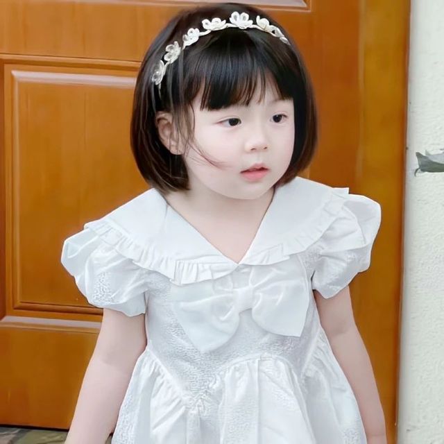 此刻我穿着白色的小公主裙带着配色的发饰正跑过来