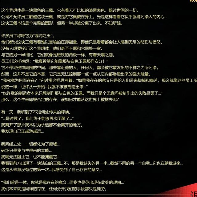 画面中的异想体……不,准确来说甚至连生物都不像,只是一小块漆黑的,中央带着一块白点的玉佩,下方绑着长长的红色的流苏