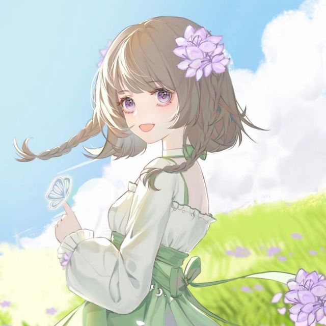 突然,苏以沫变成了一个穿着白色连衣裙、头发中插着紫色花朵的女孩, 紫色眼睛,头发上的花朵,头饰,棕色头发,天空,双辫子,微笑可爱极了,水王子直接看懵了睛,户外,头发上的花朵,头饰,棕色头发,天空,双辫子,微笑