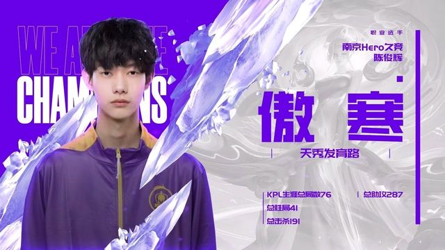 傲寒.陈俊辉“大家好,我是南京Hero久竞.傲寒,我是打射手位的,接下来的几天是你们的助教”