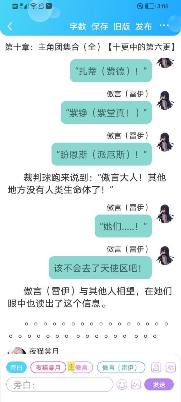 夜猫棠月(作者)“{}指出传话。”