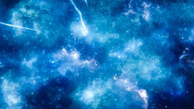突然,面前的景象变了,从黑漆漆的黑夜倏地变成了一片深蓝色的天空,还有点点白光在里面,天上还有一大片紫色的云