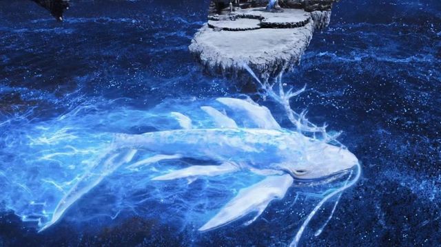 一条蓝粉色的鲲,带着翅膀朝两人飞来
