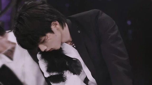他静静地站在中央,光笼住他半个身子。西装分成黑白两色,优雅而叛逆。