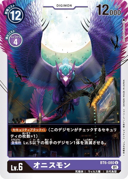 一只巨型鸟型数码兽在空中盘旋,遮天蔽日,摧毁了所有高楼建筑