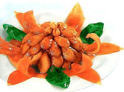 南海金莲是福建福州的特色传统名菜,属于闽菜系。以豆腐为主料,辅以莲子、冬笋、冬菇和凉薯烹制而成。此菜色彩艳丽,造型像一朵盛开的金色莲花,非常精美,口味清香,口感软糯。