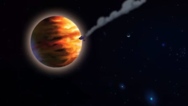 飞船在太空中兜了几个圈后,飞向云霄星