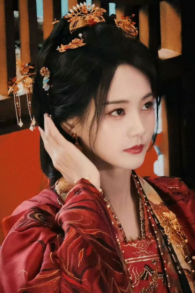 她看着镜子中的自己,忍不住扶上头上的金钗,她自己都忍不住感慨到自己真是美丽。