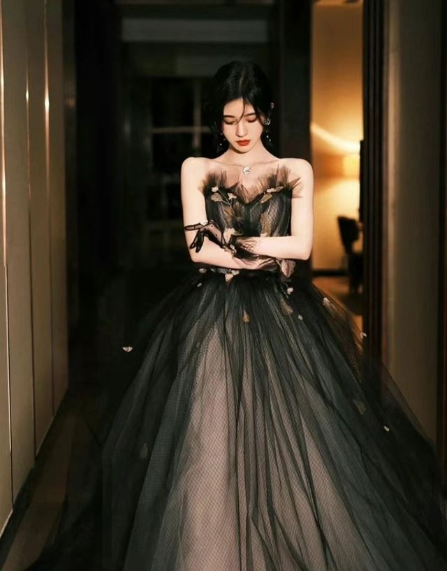 俞笙笙看着眼前的黑纱裙,胸前的布纱还点缀着点点铜黄色的小碎片