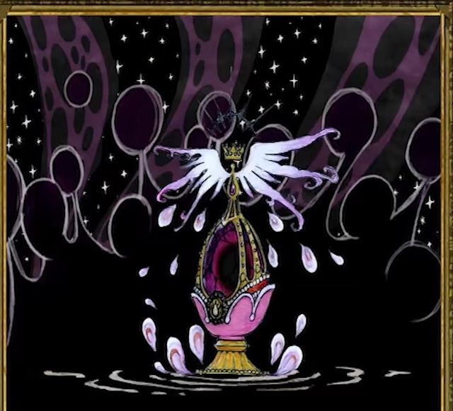 从手指中射出大量绝望魔力,凝结成一个形,从而诞生出反生命,就这样魔女诞生了,所诞生的属性代表着「救济」,身长可达数百米,她的外表如同无数的根连缀而成的树一般,但内部的本体却是一颗巨大的,有一对粉色翅膀的灵魂宝石。