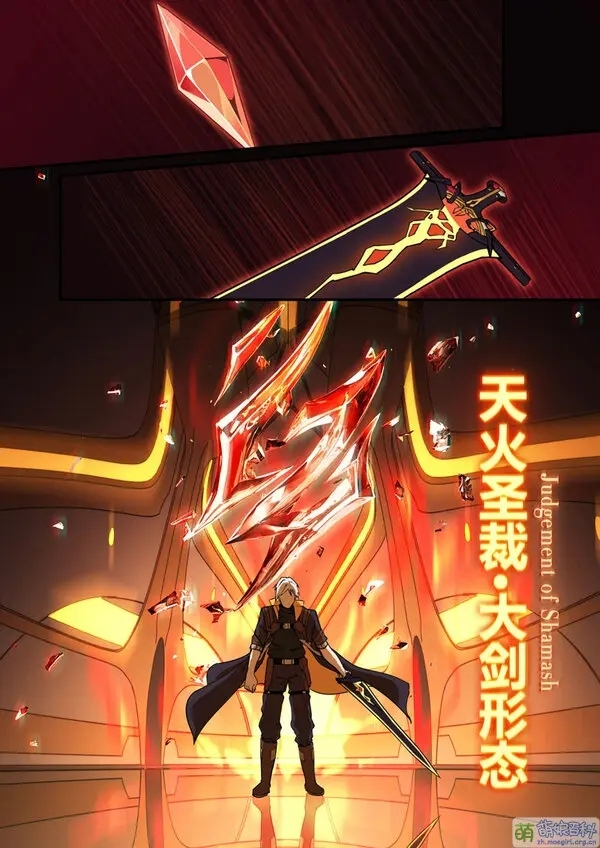 爆发出比任何恒星都要亮的光芒,两颗封闭齿轮里面的能量不断的涌出,足以将这个宇宙推向热寂的高潮,就这样强大的烈焰斩击全部往一个地方斩下。