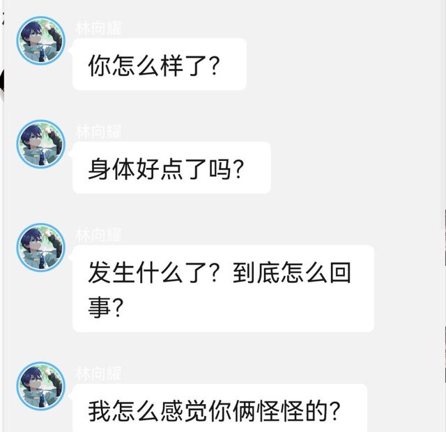 林向耀“哎,行吧你们女孩子都有属于你们之间的秘密”〈无奈〉