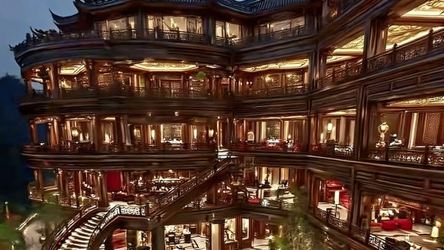 每层楼的雕花栏杆,宛如精美的蕾丝花边,细腻而繁复。