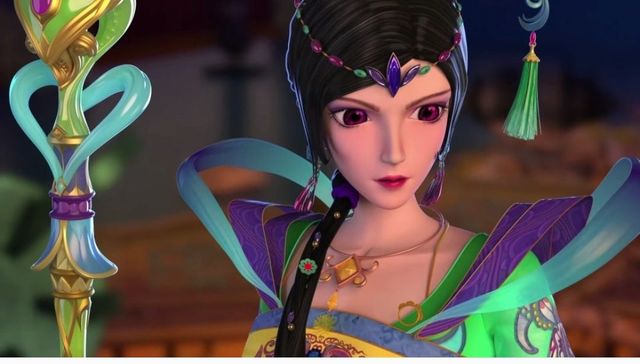 墨书笔吸收了颜爵布在上面的仙力,而水王子、庞尊、和毒娘娘时不时输入仙力,转化为法阵。曼多拉被困在书画中,无法动弹。