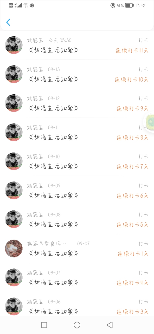 作者感谢这位亲连续11天的打卡