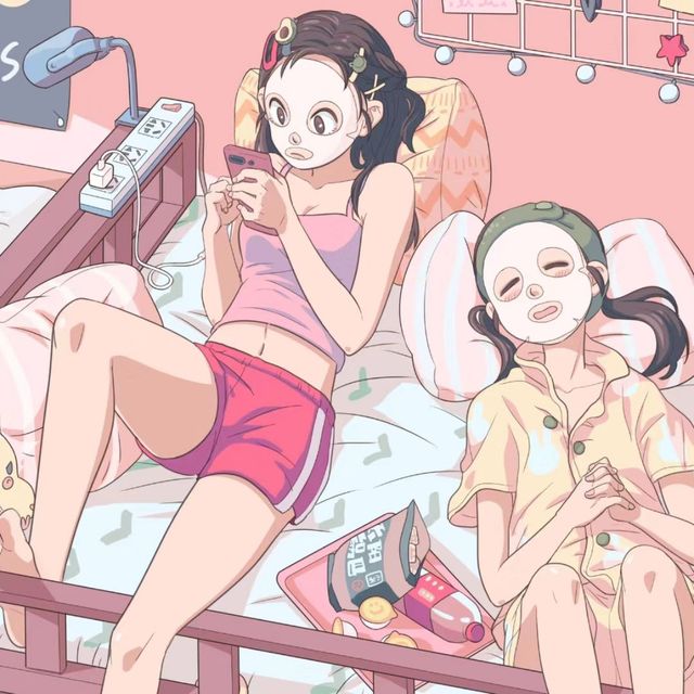 然后筱渔和依晴,两个人躺在床上敷着面膜,那叫一个舒服