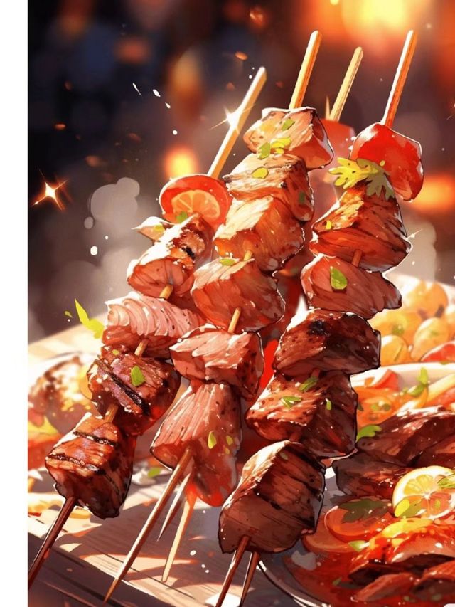两人开始吃烧烤喝冰啤酒🍺