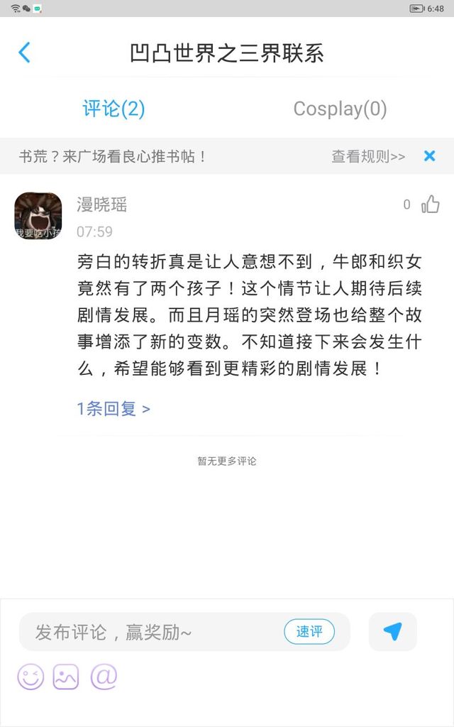 沐瑶这是我第一次收到评论耶
