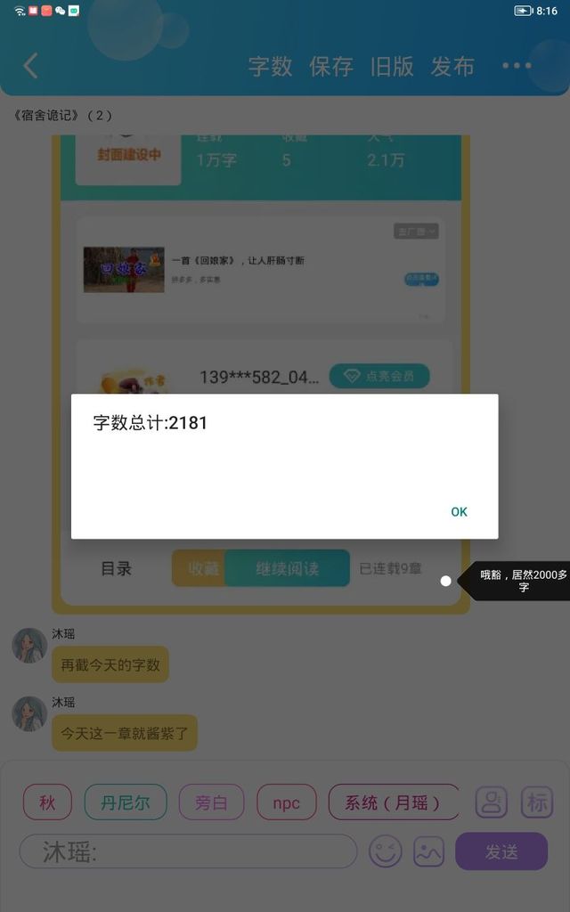 凯莉现在字数要到一万了,不截个图
