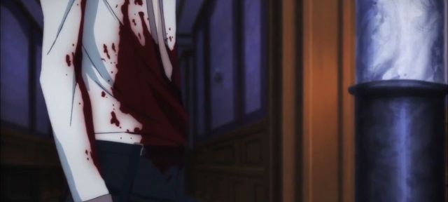 绫人的白衬衫上的大滩血迹显得格外显眼,他此刻正站在楼梯下方,看着母亲