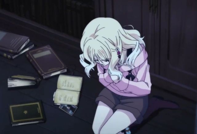 因为前面书柜掉落书本,所以小森唯下意识的看了看一旁掉落的书本,竟然看到了一张照片,于是迅速拿起来看看
