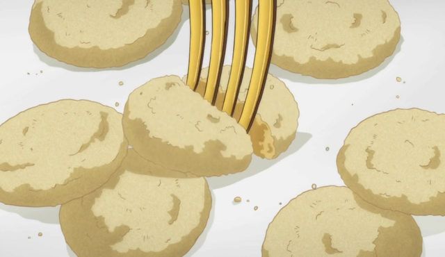 说着便用叉子叉向香蕉球,但是太用力碎掉了,随后奏人便玩起了餐盘上的香蕉球,搞得满桌渣子