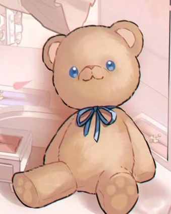 思考间孤炎又抱起那只蓝色眼睛和丝带的小熊