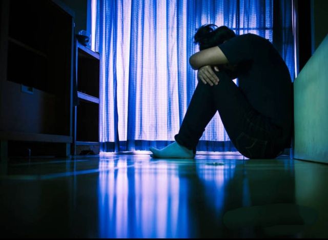 同一时间的安心穿着睡衣坐在地上的角落里,四周漆黑一片,整个人陷入黑暗中