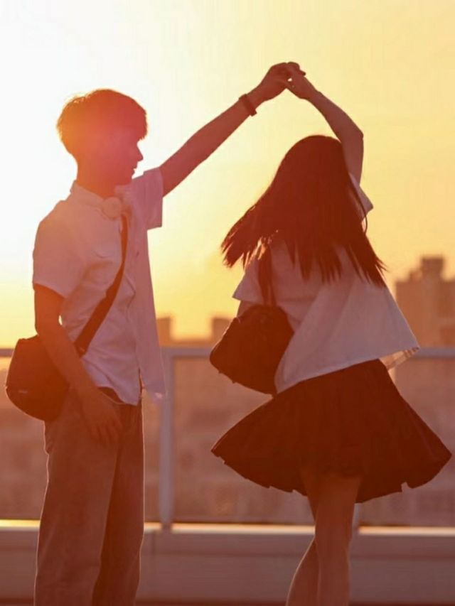 简直就像两个男朋友送女友上学一样。
