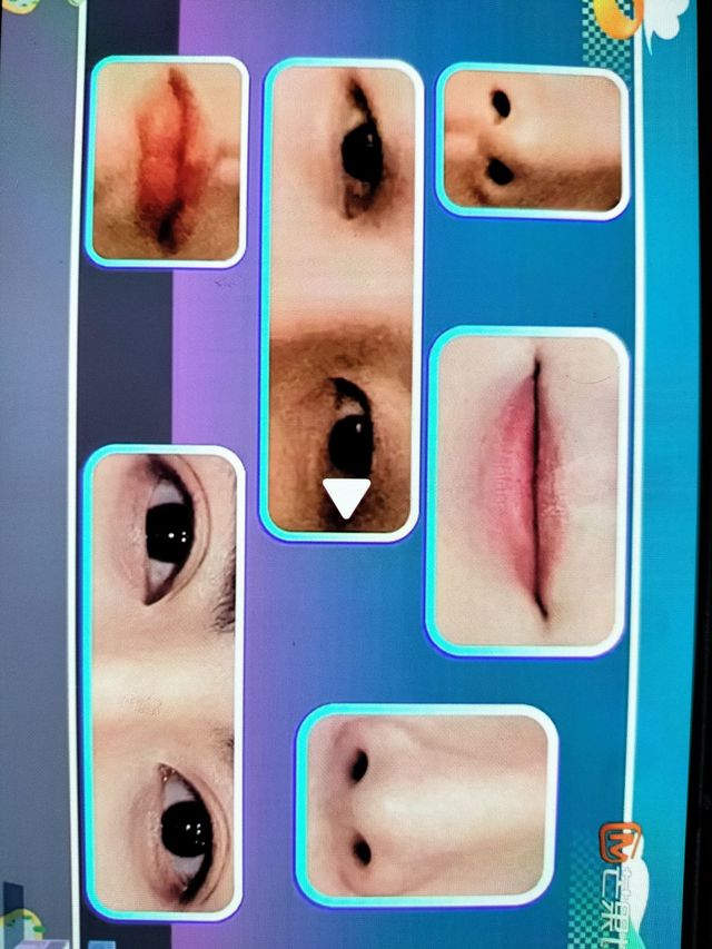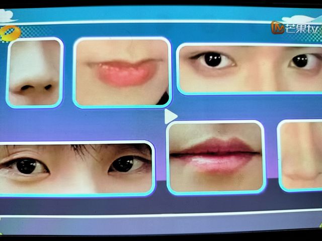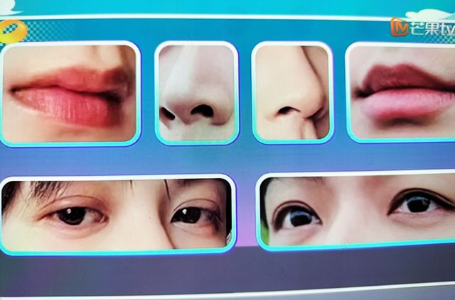 何炅题型叫做看五官,猜艺人的名字,因为我们是团队作战,所以不能一个人说出这两个艺人的名字,一定是一人说一个