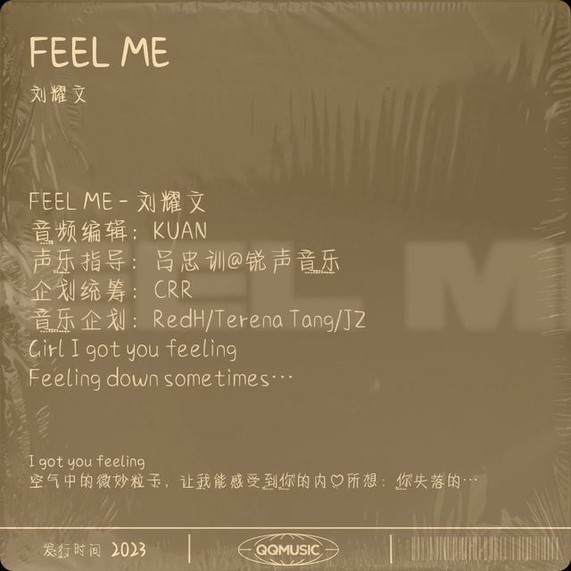 作者最后,我们恭喜刘耀文又出了一首新歌《FEEL ME》