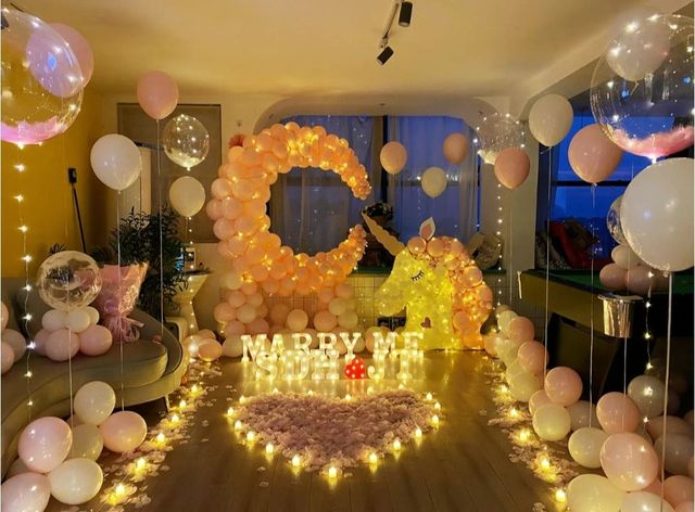 门口便走进来许多拿着礼花和装饰物的人,因为时间不够只能简单装饰,先把装饰物摆好后,马嘉祺把丝带一把扯下来,随后又从另一边口袋拿出早就准备好的DR钻戒单膝下跪
