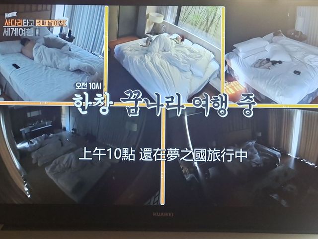 [XIUMIN房间]大哥正躺在床上翻来翻去,还想再多睡一会儿;[客厅]因爬梯子输了,睡在客厅的成员们也熟睡中