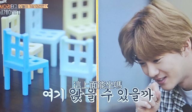 轻轻尝试堆椅子的SUHO意外的做的很是