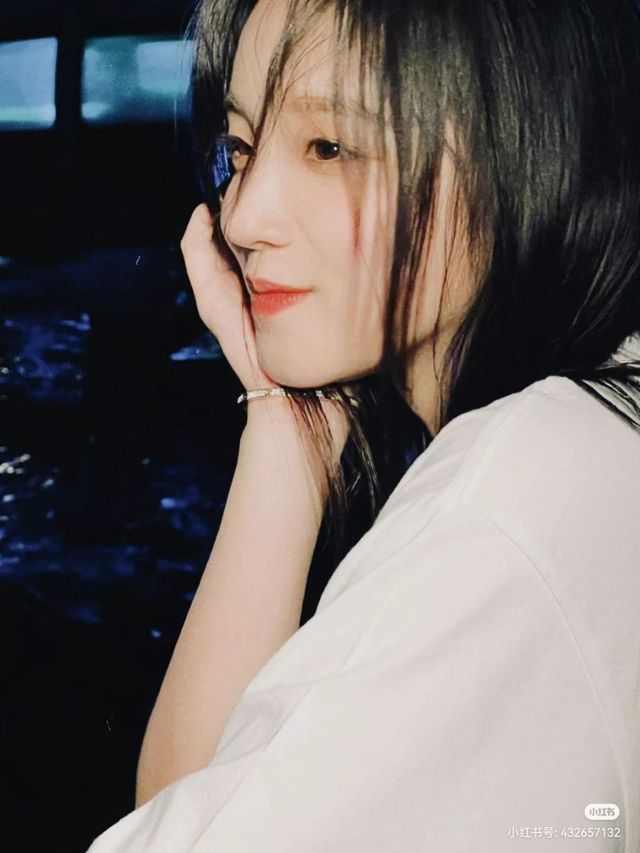 换了一套装扮的她,柔和的长发乖顺的垂落在两肩,眼神也没有白天的犀利,整个人都变得柔和起来,像一个邻家小妹