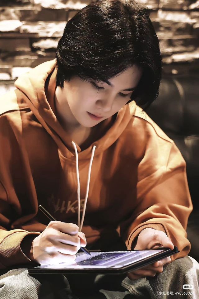 所有人都穿的比较休闲,闵玧其穿了一件橘色的卫衣随意的找了个地方坐下,手上拿着基地专门配置的平板,规划着明天的线路,篝火的光映在他的脸上柔和了他的面部线条