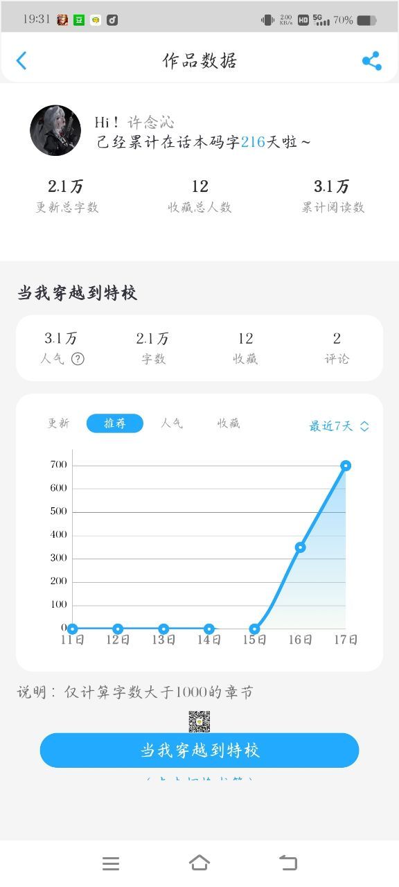 作者是最近几天的作品数据