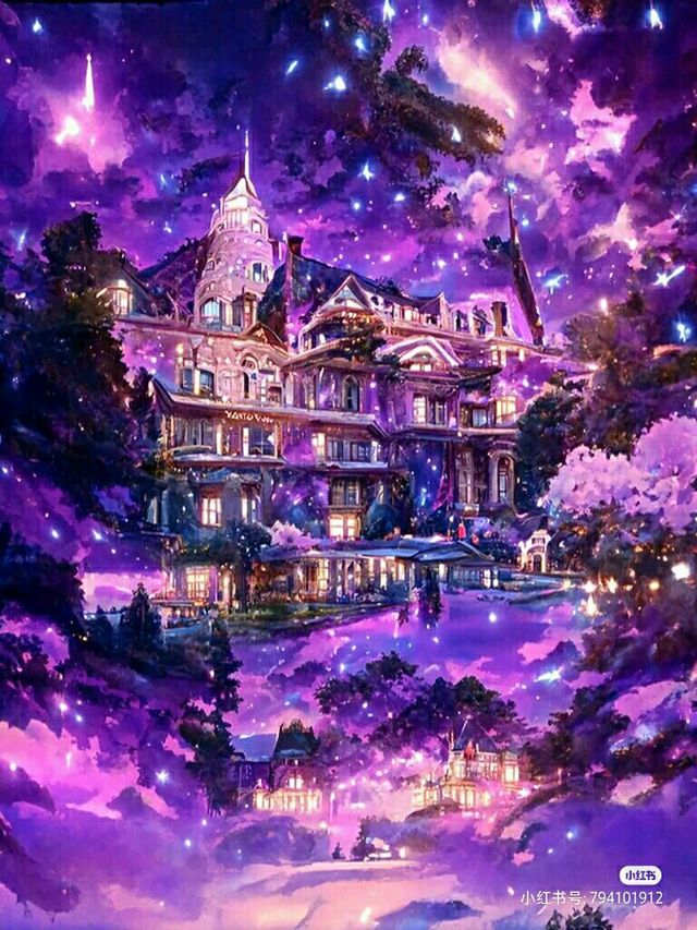 星雨诺带洛小熠来到了一片紫色花海,花海中有一座别墅,别墅旁有一个秋千,样子大约是这样的: