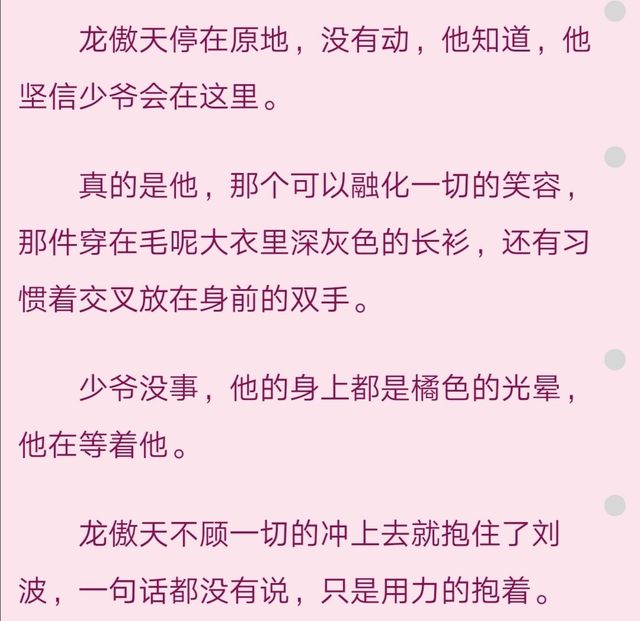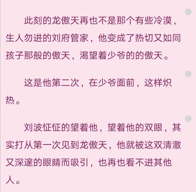 我看这一段的时候,是真的感受到了傲天那种小心翼翼又紧张的心情,少爷之于他是最最宝贵的,所以他会害怕再也见不到少爷。