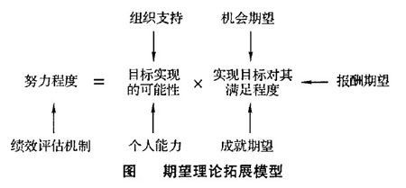 通过上述分析,期望拓展理论告诉人们,在工作中愿意付出努力程度的大小与对此项工作的绩效评估机制有关,并取决于实现目标对其满足程度和目标实现的可能性两种因素。实现目标对其满足程度又可以分为不同的方面,而这些方面相对重要程度是不一样的。