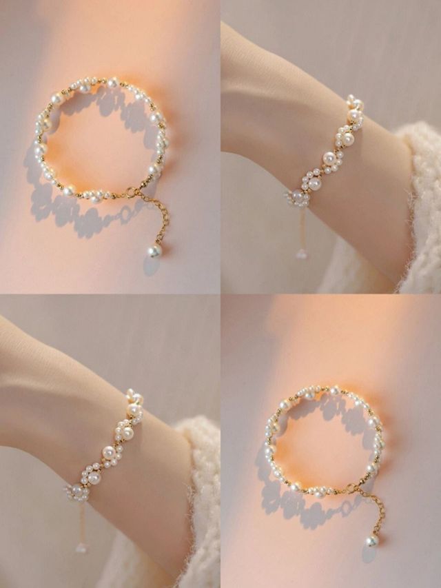 那是一条若干颗中等个头大小的珍珠,被若干颗小珍珠以S形走向围绕起来的手链。