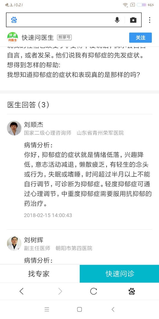 跑龙套从他的答题来看很有可能是抑郁症。