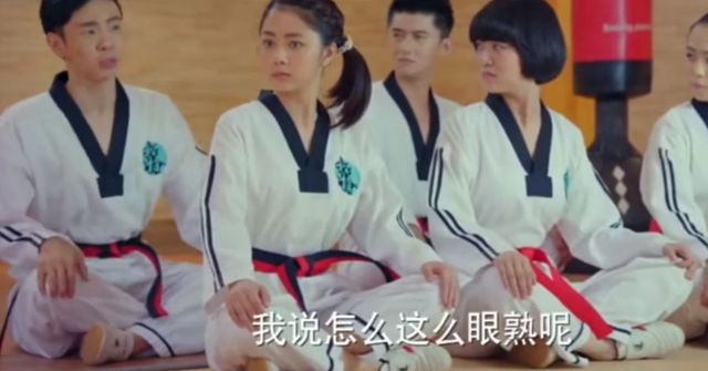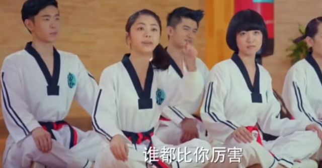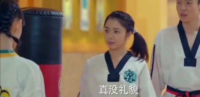 金敏珠在松柏道馆里搞破坏,还把一个训练用的道具给踢倒了