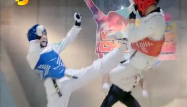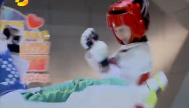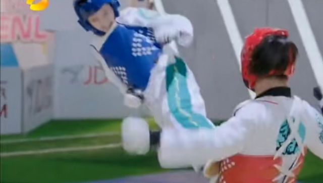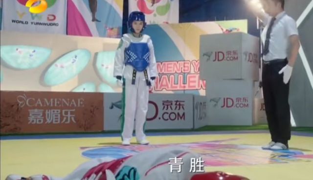 戚百草被金敏珠的连环十八踢踢到在地