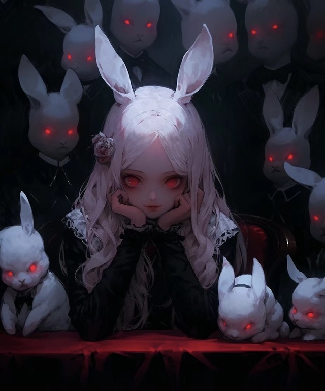 血迹斑斑的铁门打开了,伴随着兔子的笑声,起雾了,月光照耀在地上,只是洁白的地上,又有几个身影晃入其中