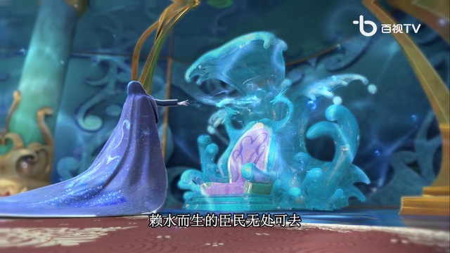只见这位黑袍人念了段咒语后 水王子的王座便出现了裂痕