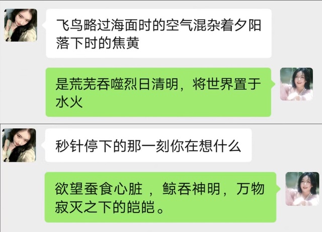 诶颜媋,我记得我们俩有一次大半夜聊天玩双盲诗你还记得吗,就是两个人同时发句子拼凑成一首完整的诗,我现在都记得你发的第一句是什么。
